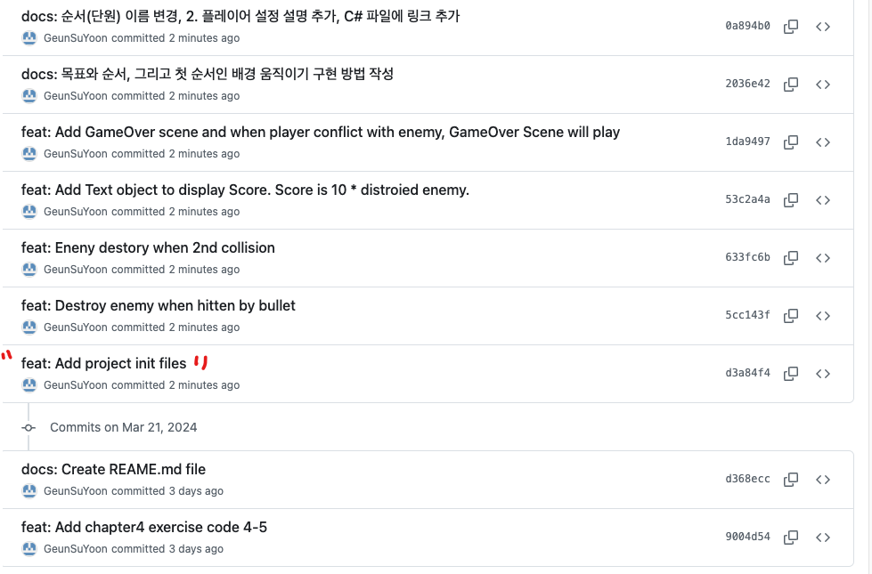 - feat: Destroy enemy when hitten by bullet 부터 보인다는 뜻이다.
